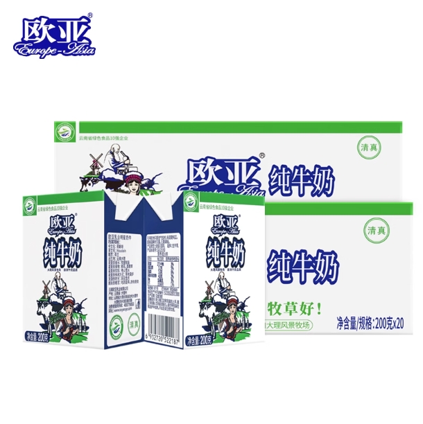 28.8元包邮!欧亚云南大理高原纯牛奶20盒