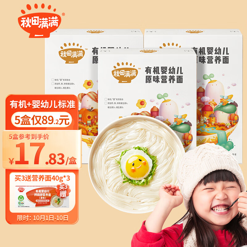 ¥23.9 秋田满满婴儿面条宝宝面条儿童有机早餐线面婴幼儿辅食无添加盐面条200g 26.9