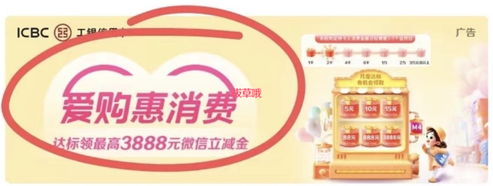 工行信用卡小程续,M4以上,有消费的抽,有7次机会,最低35保底,是bug