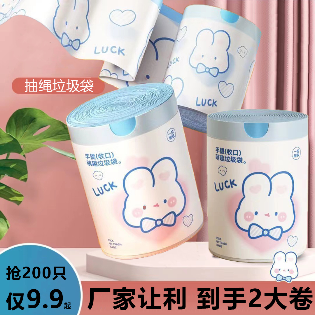 ¥1.40 【9.9=200只】抽绳式一次性垃圾袋印花加大家用自动收口大卷不脏手 9.90