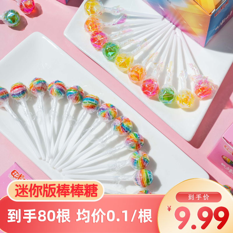 ¥9.99 【林琳家六一儿童节礼物实发80根】彩虹电光口味mini棒棒糖零食迷你 9.99