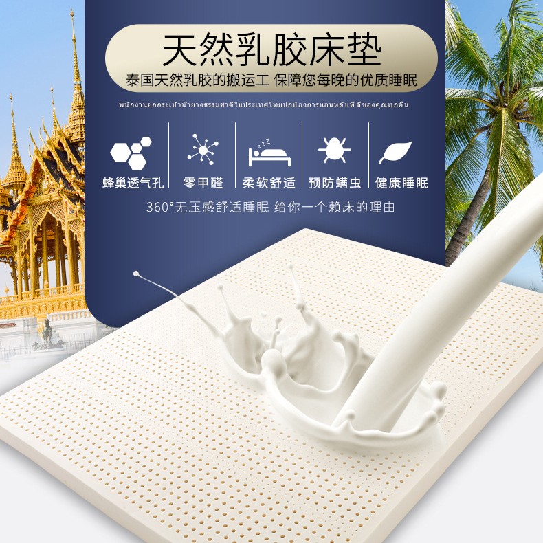 ¥139.00 泰国进口天然乳胶床垫单人双人床垫子榻榻米床垫定制防螨柔软透气 139.00