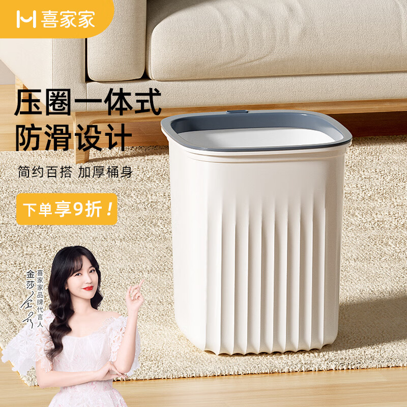 ¥7.9 喜家家垃圾桶客厅厨房卫生间办公室卧室厕所家用塑料纸篓压圈式垃圾筒9L 9.9