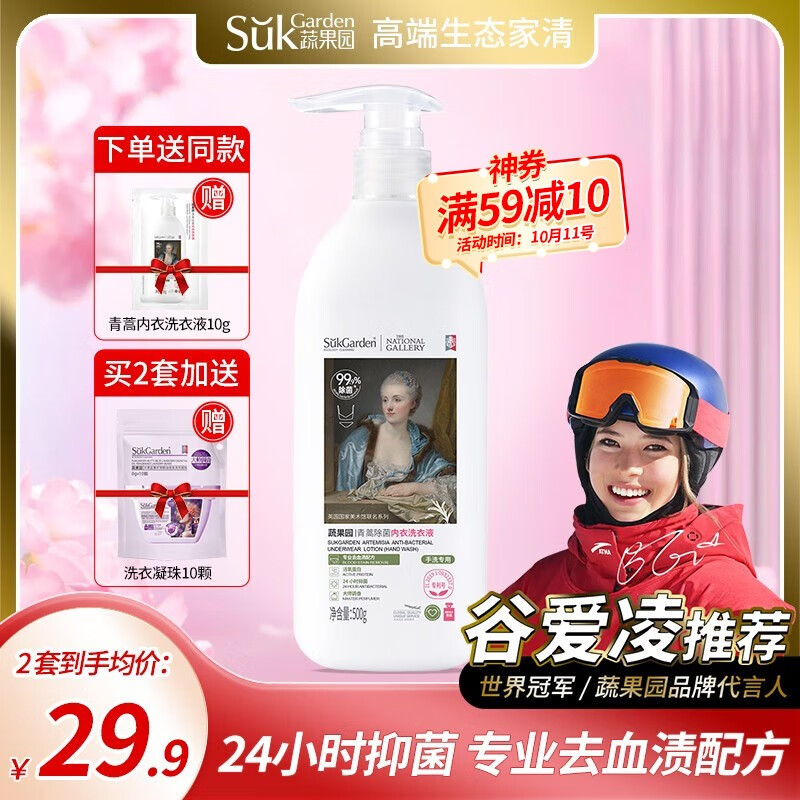 ¥29.9 蔬果园(SukGarden)内衣内裤洗衣液生理期除菌去血渍男女通用手洗专用内衣洗衣液 【青蒿精油】500g 39.9
