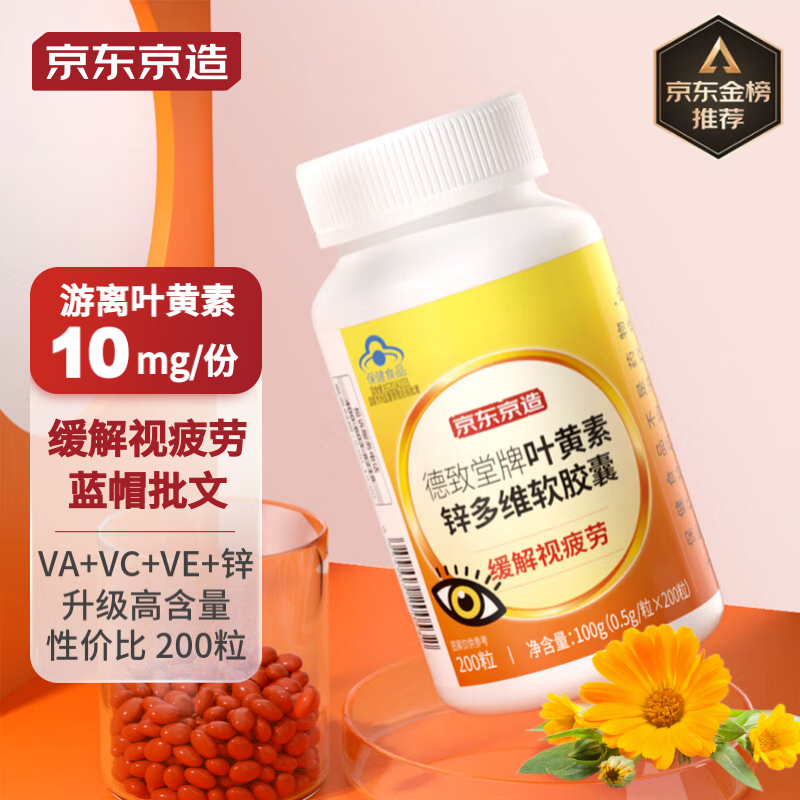 ¥59.9 京东京造 叶黄素多维护眼片200粒 5mg/粒 游离型叶黄素蓝帽缓解视力疲劳儿童成人中老年人 69.9