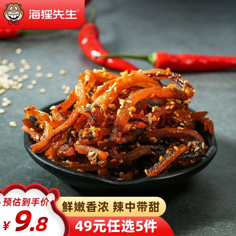 ¥14.9 海狸先生 香辣鳗鱼丝辣条小鱼仔零食小鱼干即食装海鲜麻辣海味零食 鳗鱼丝80g*1袋 15.9