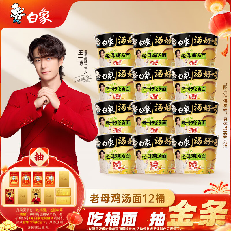 【爆款直降】白象汤好喝老母鸡汤面泡面116g*12 2件仅44.9元