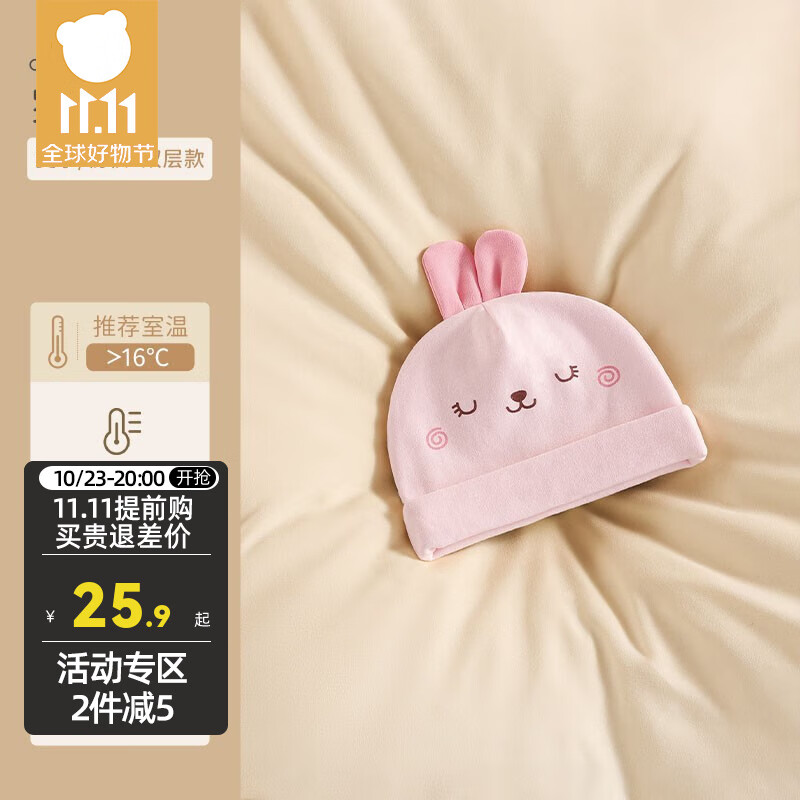 ¥15.9 贝肽斯婴儿帽子春秋新生儿棉质胎帽宝宝0-3个月初生护头囟门帽 兔子-粉色 春秋 0-3个月 (帽围32-39cm) 25.9