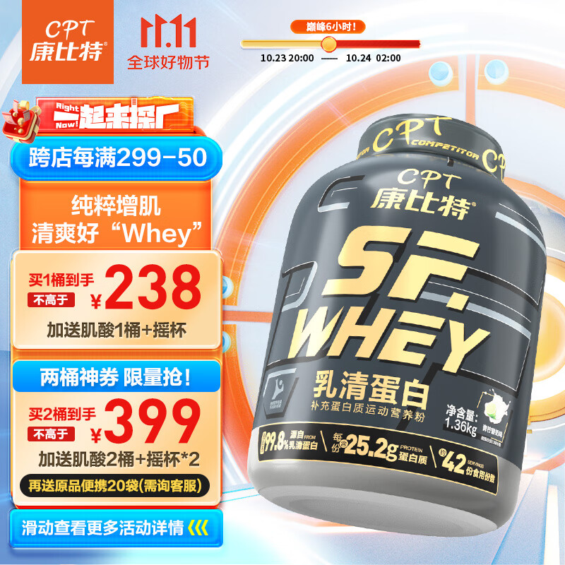 ¥228 康比特SFWHEY乳清蛋白粉 79%高蛋白含量低脂补充蛋白质健身蛋白粉增肌粉健肌 乳清蛋白3磅/1.36kg 青柠酸奶味 238