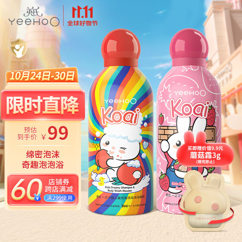 ¥89 英氏儿童洗发沐浴露二合一婴儿氨基酸保湿慕斯小奶泡桃子味+草莓味 99