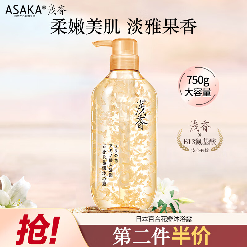 ¥54 浅香(ASAKA)花瓣沐浴露香味持久男女士氨基酸香氛洗澡水滋润保湿520g百合 59