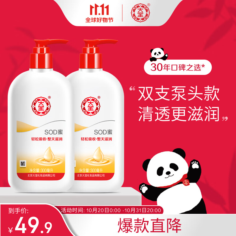 ¥39.9 大宝SOD蜜300ml双支身体乳液面霜润肤保湿霜男女士护肤品 49.9