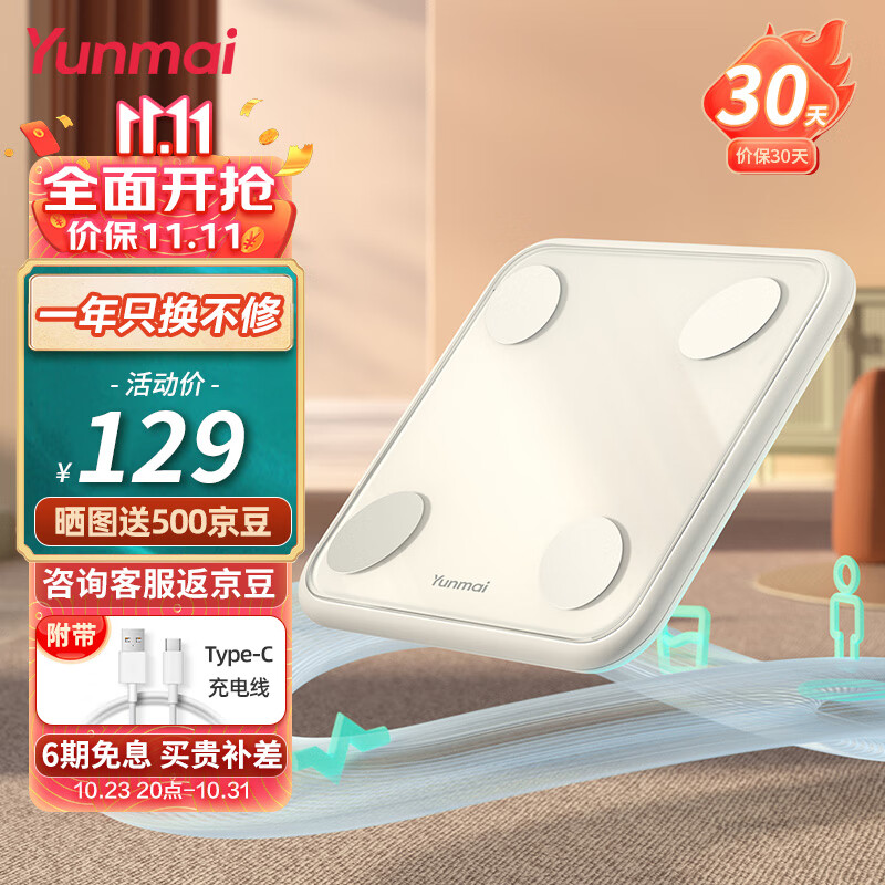 ¥129 云麦智能体脂秤3s 充电智能电子秤家用体重秤 升级45项人体健康数据 高精准减肥体脂称脂肪秤云雾白礼物礼品 139