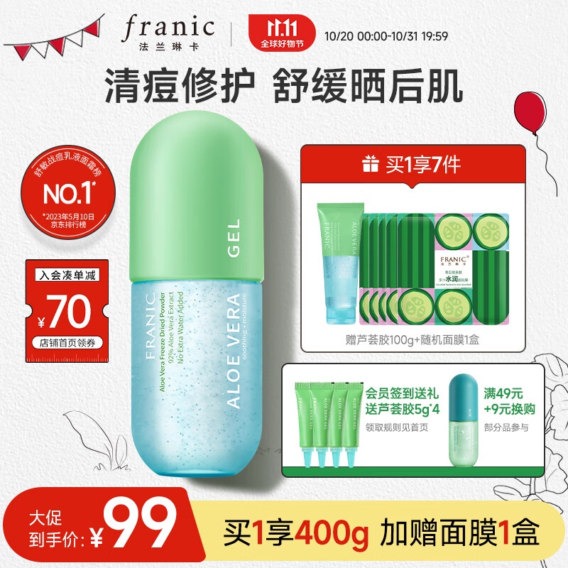 ¥98.88 法兰琳卡(FRANIC)芦荟胶 祛痘修护晒后呵护补水舒缓芦荟凝胶300g 99