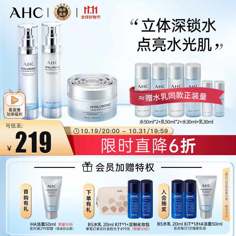¥209 AHC HA水乳透明质酸水乳面霜护肤品礼盒套装510ml 生日礼物 219