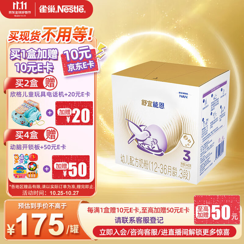 ¥174.88 雀巢(Nestle)舒宜能恩3段 1200g A2奶粉 原雀巢能恩升级舒宜能恩新国标 175