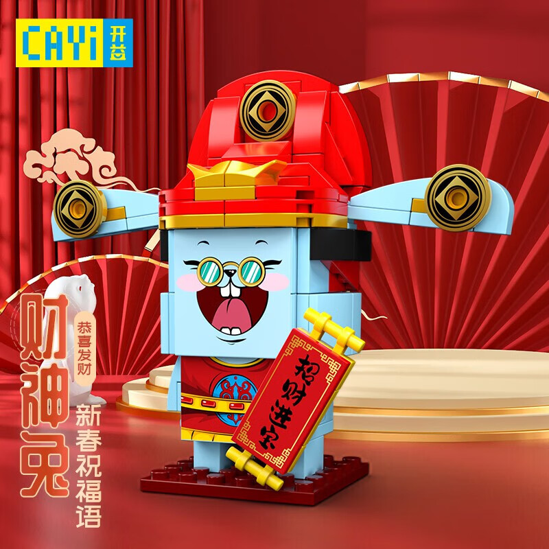 ¥6 开益节日礼物拼装积木拼搭趣味创意互动男孩女孩儿童玩具儿童节日礼物 财神兔 130颗粒 19