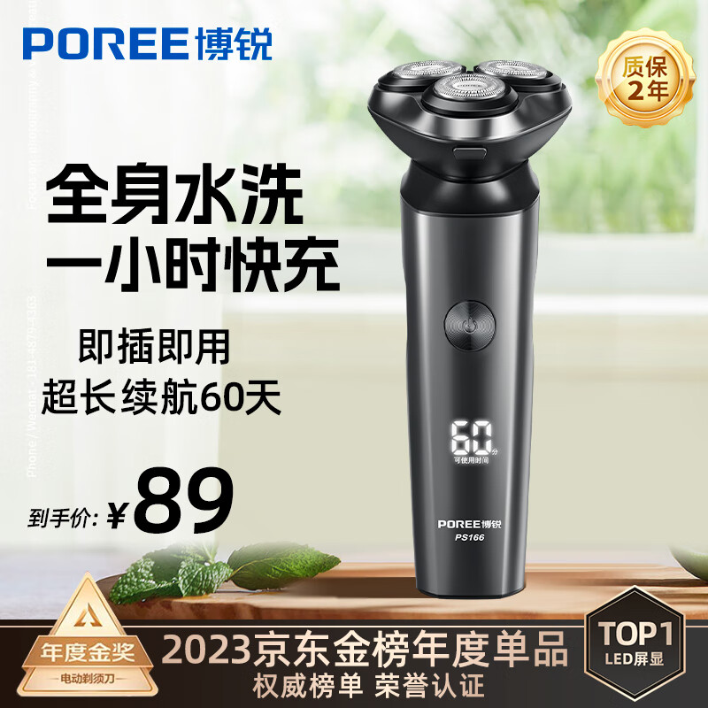 ¥98.95 飞科博锐电动剃须刀男士刮胡刀全身水洗快充车载胡须刀便携须刨剃胡子刀生日礼物男 炫酷黑博锐PS166 99
