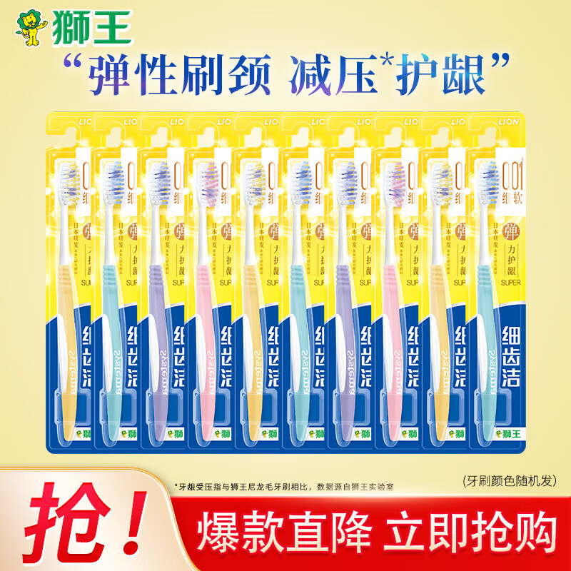 ¥73 狮王(Lion)LION狮王细齿洁弹力护龈软毛牙刷10支 细毛软毛牙刷 呵护牙龈 76
