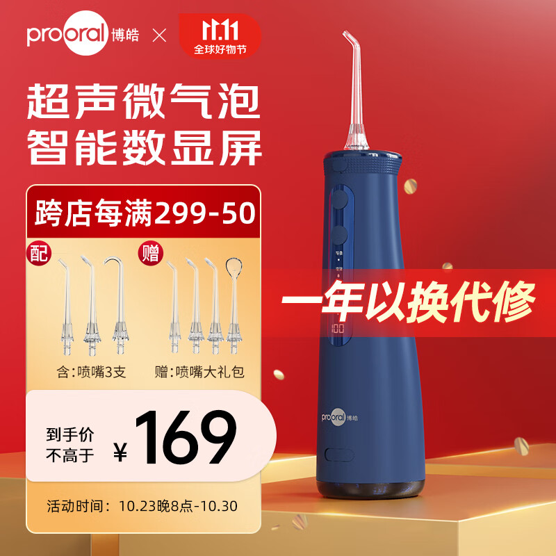 ¥165 博皓(prooral)手持立式冲牙器水牙线洁牙器大水箱智能屏显 5025pro釉蓝 175