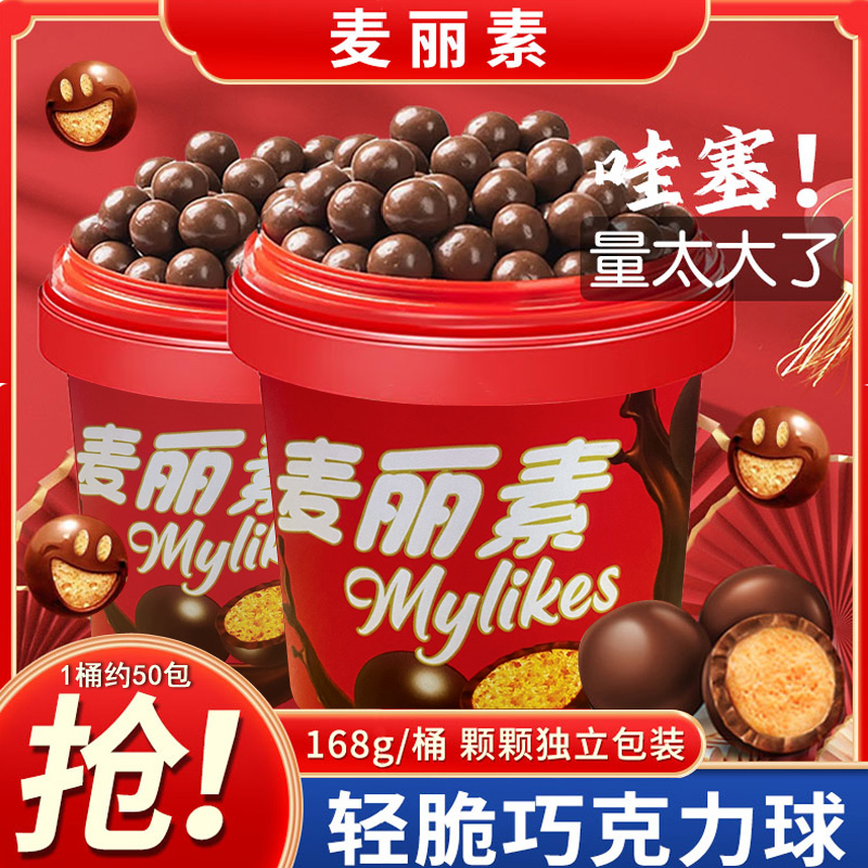 ¥9.90 【一桶50颗仅9.9元】麦丽素巧克力豆夹心糖果桶装学生休闲小零食 9.90