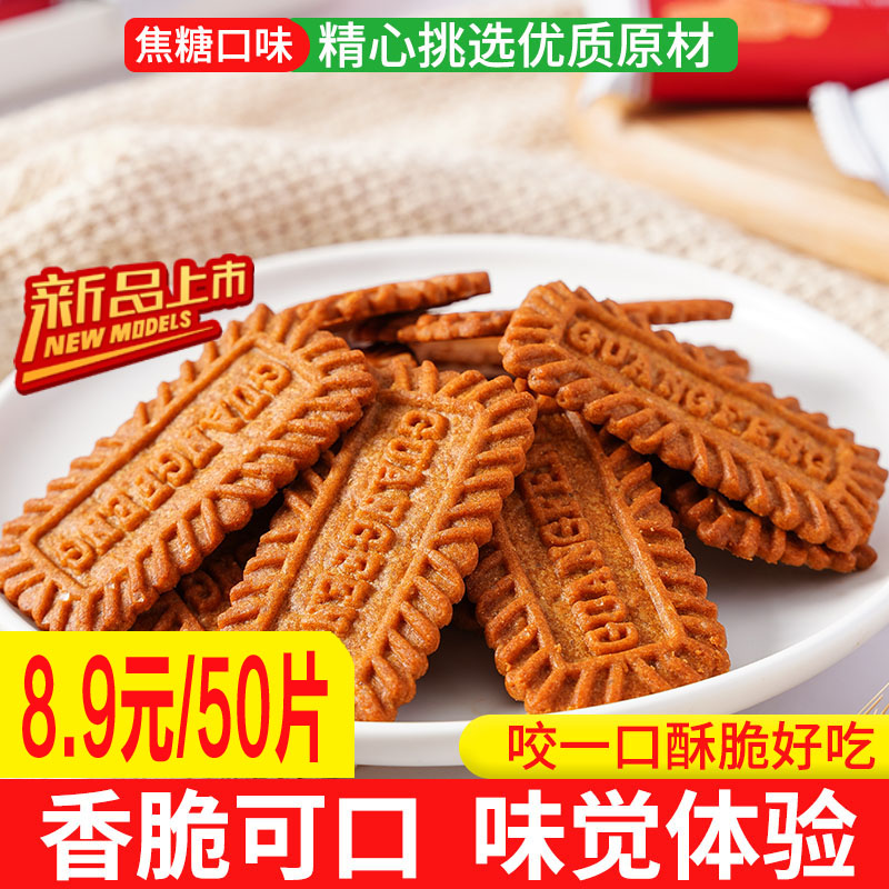 ¥8.90 【主播福利】25包50片 焦糖饼干结婚喜饼网红酥脆老少皆宜烘培香甜 8.90