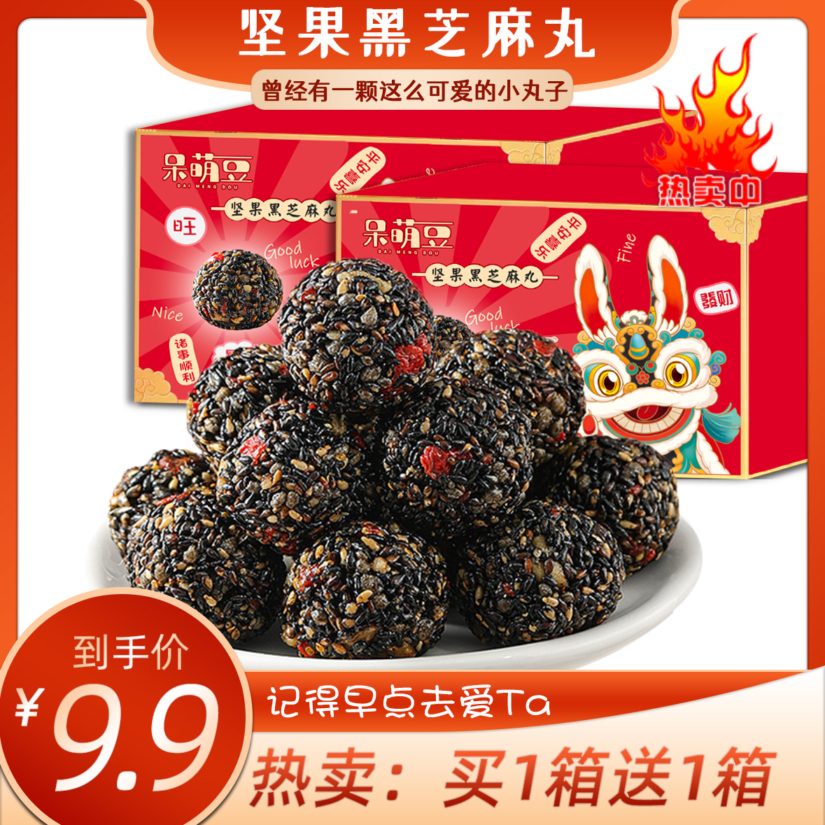 ¥9.90 【买一箱送一箱】枸杞桑葚黑芝麻丸好吃不腻解馋零食芝麻丸共60包 9.90