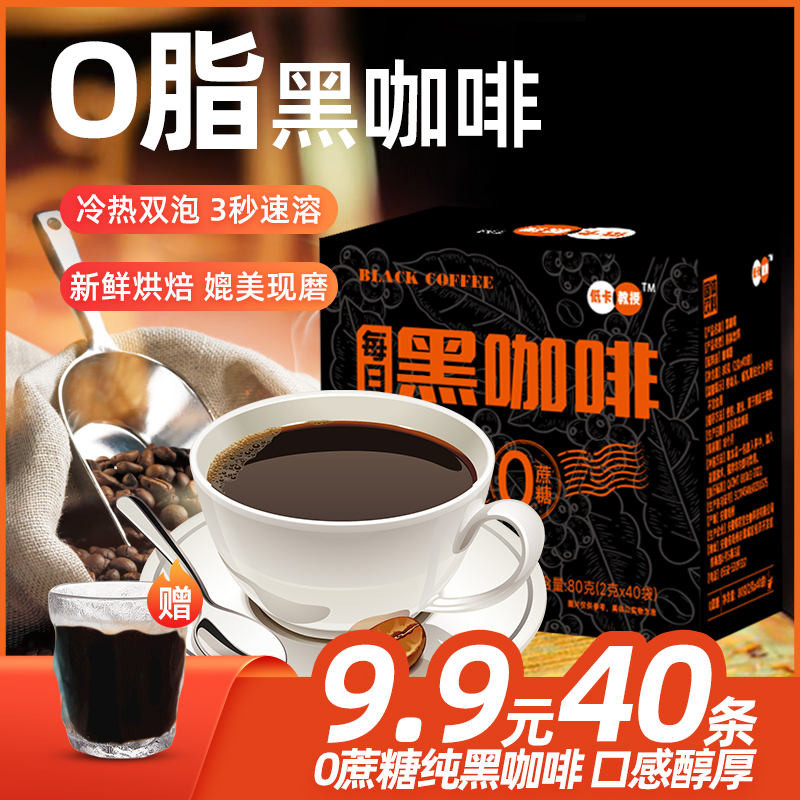 ¥7.90 【9.9元40条】黑咖啡 40条*2g 冷热双泡提神醇香浓郁碳水纯粹 7.90