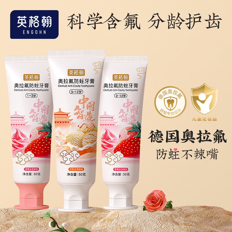 ¥39.90 英格翰儿童牙膏奥拉氟防蛀可不吞咽宝宝小孩专用含氟1-3到6-12岁 39.90