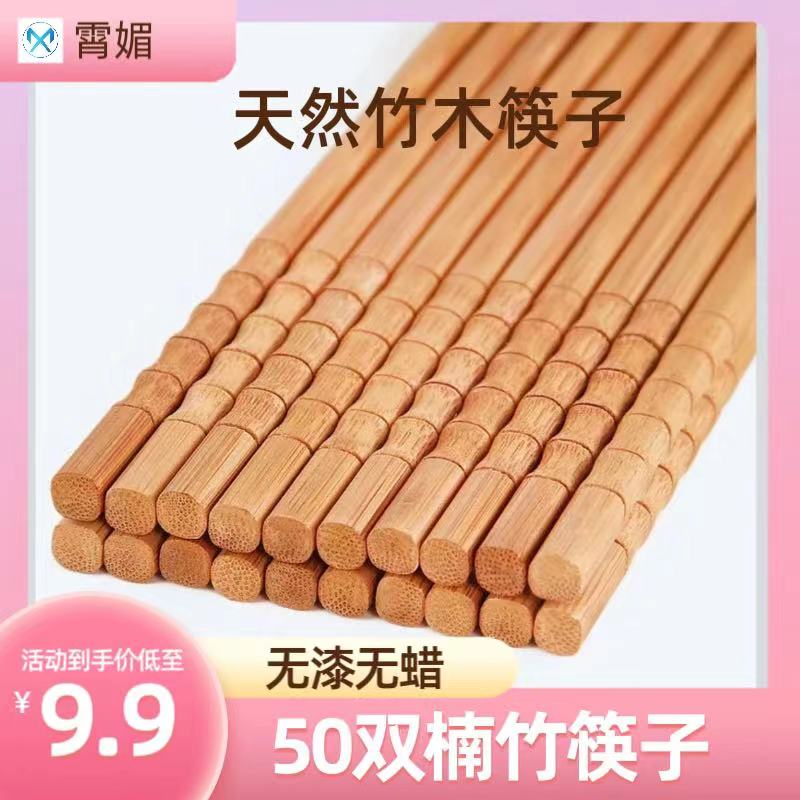 ¥9.90 【9.9抢50双楠竹筷子】无漆无蜡天然竹木筷子葫芦筷子结实耐用环保 9.90