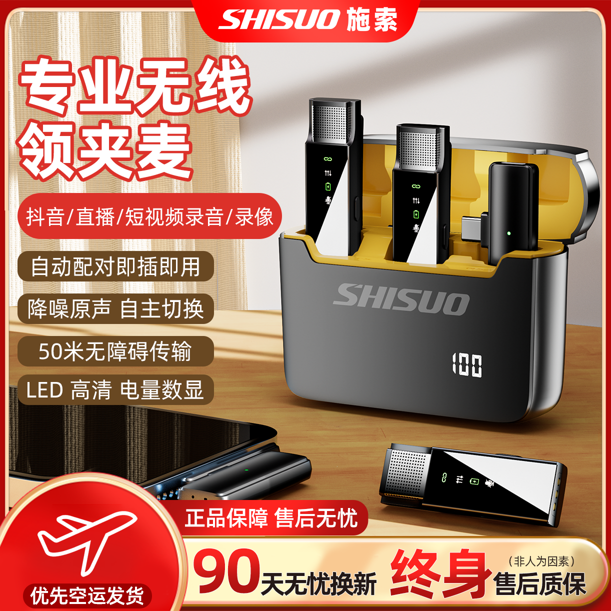 ¥108.00 SHISUO/施索无线领夹麦克风手机直播话筒双数显户外降噪录音收音 128.00