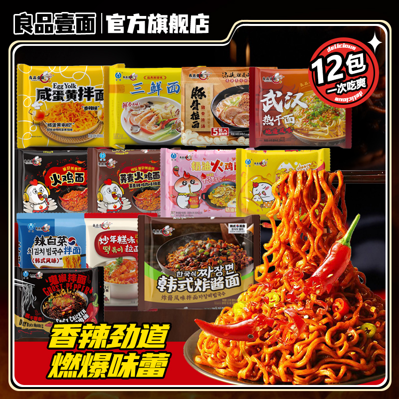 ¥29.90 【23年国货】良品壹面*12口味榴莲火鸡面速食方便面美食泡面拌面 29.90