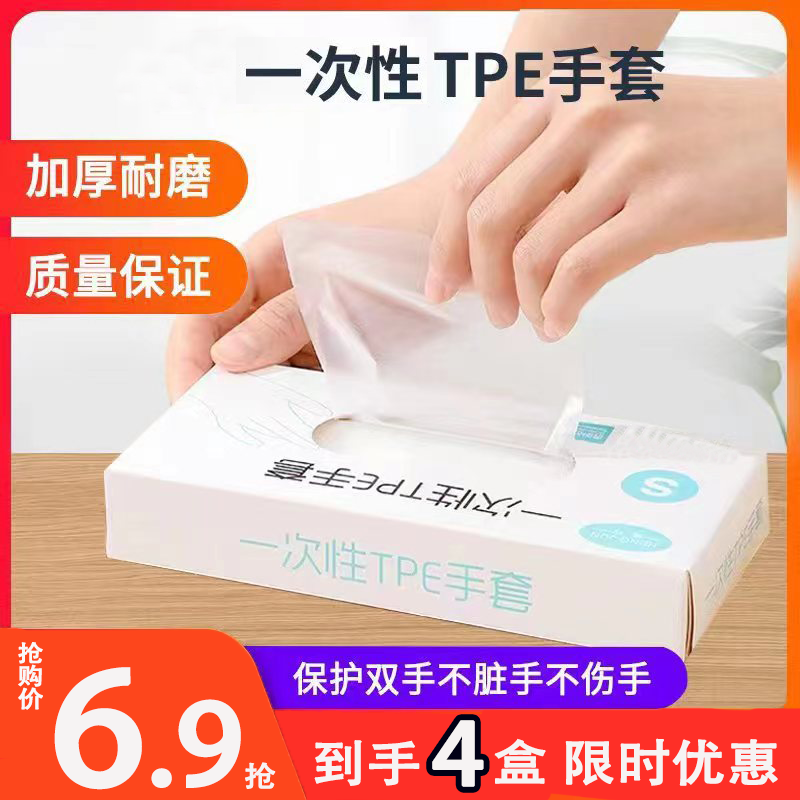 ¥6.90 【6.9元抢4盒】一次性TPE手套耐用弹性柔软护手盒装家务卫生防护 6.90