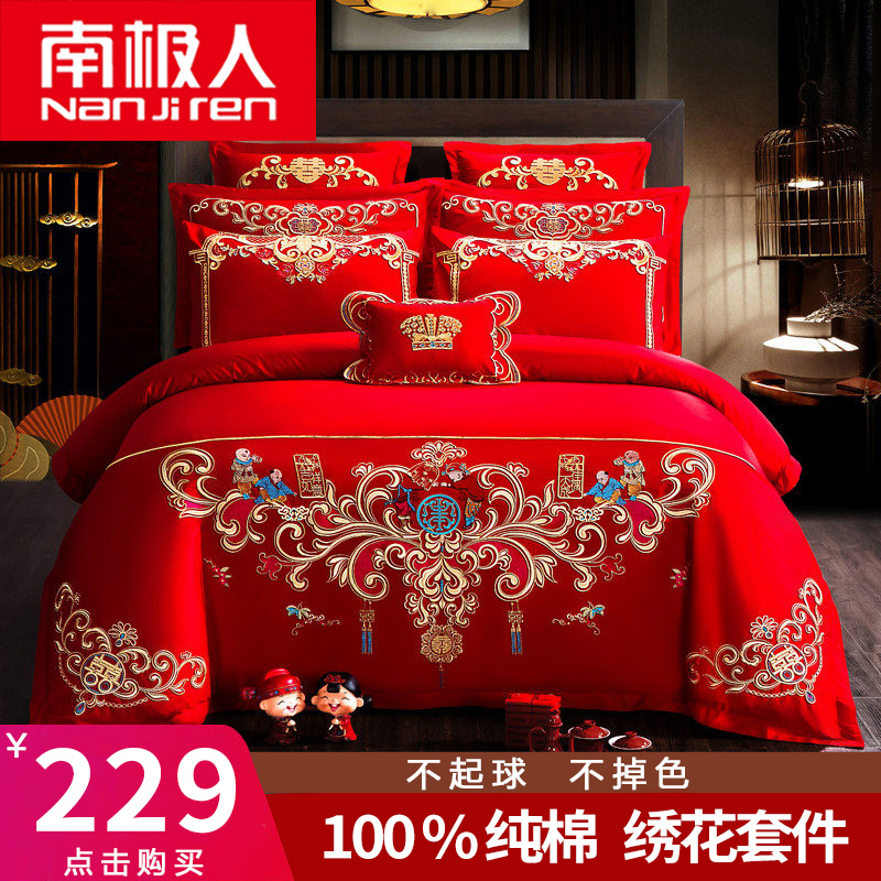 ¥229.00 全棉高端婚庆四件套纯棉红色床单被套大红色结婚100%全棉床上用品 239.00
