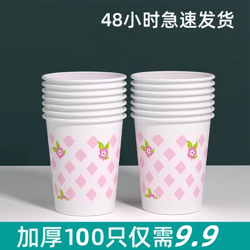 ¥9.99 【10元到手共100只】装一次性纸杯家用商用加大加厚粉色小花婚宴 9.99