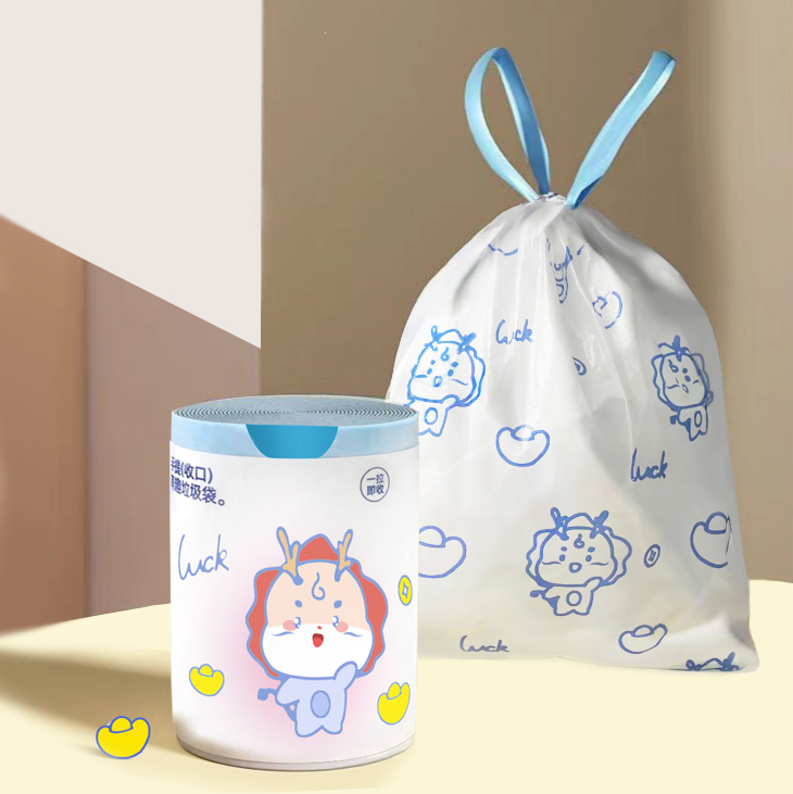 ¥4.90 【9.9=100只】超大卷抽绳式垃圾袋印花加厚收口不脏手一次性塑料袋 9.90