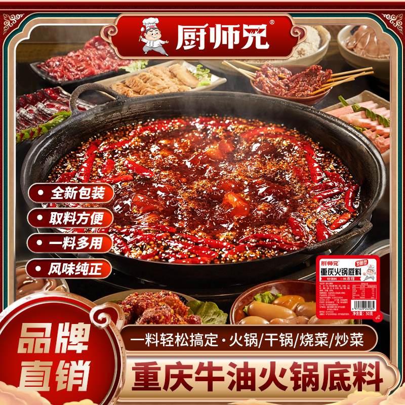 ¥5.50 厨师兄牛油火锅底料50g/盒重庆老火锅底料冒菜毛血旺麻辣烫调味料 5.50