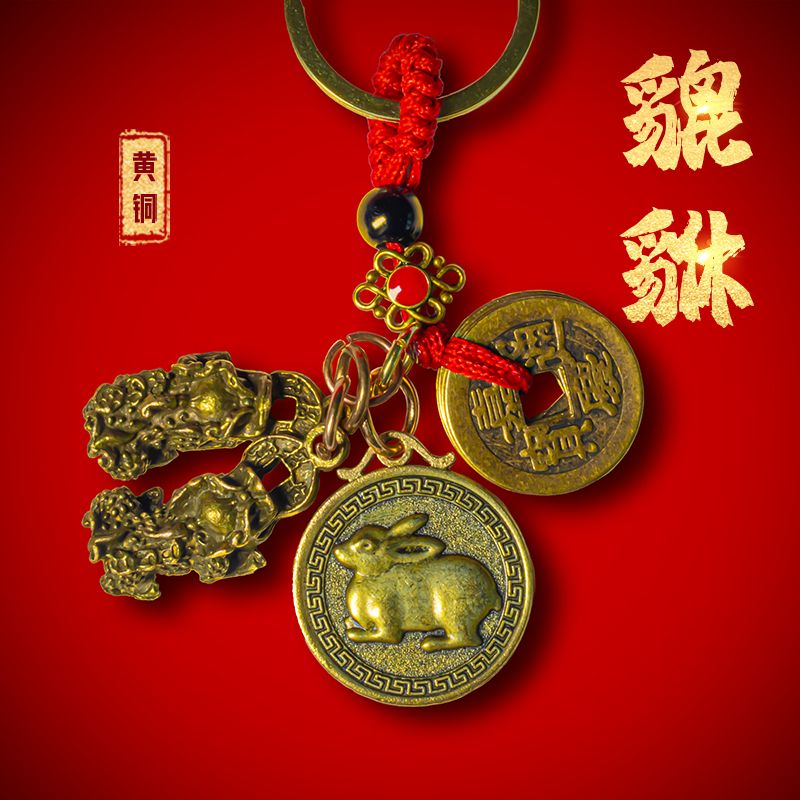 ¥9.80 【师傅推荐】黄铜貔貅葫芦十二生肖钥匙扣挂件属相2 9.80