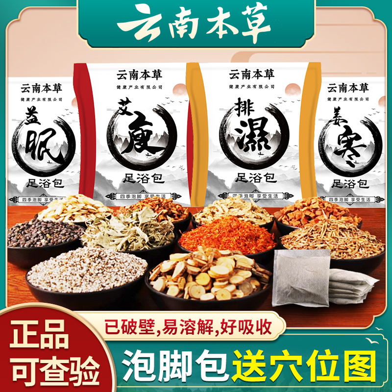 ¥9.80 【送穴位图】云南本草泡脚包艾草生姜泡脚药包洗澡足浴粉体寒湿气 9.80