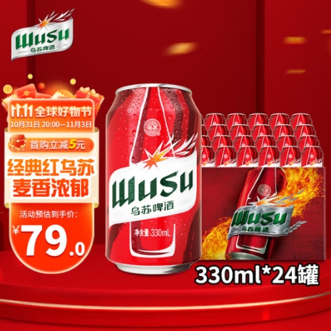 乌苏啤酒(wusu)红乌苏330ml*24听 整箱装: