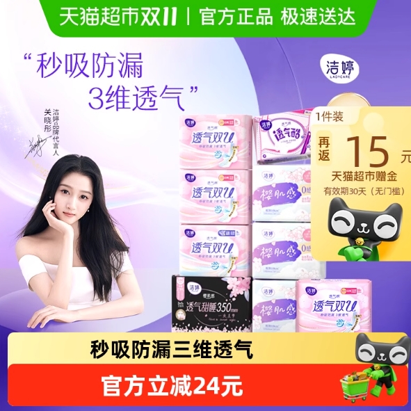 14.7元包邮!洁婷透气双U卫生巾103片(返15元超市卡后)
