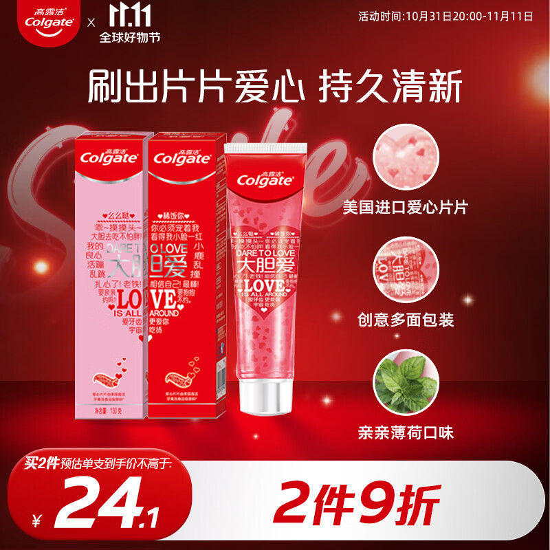¥52.5 高露洁(Colgate)大胆爱 限量版 爱心牙膏套装 130g×2(红色爱心片片 情人节礼物) 53.5