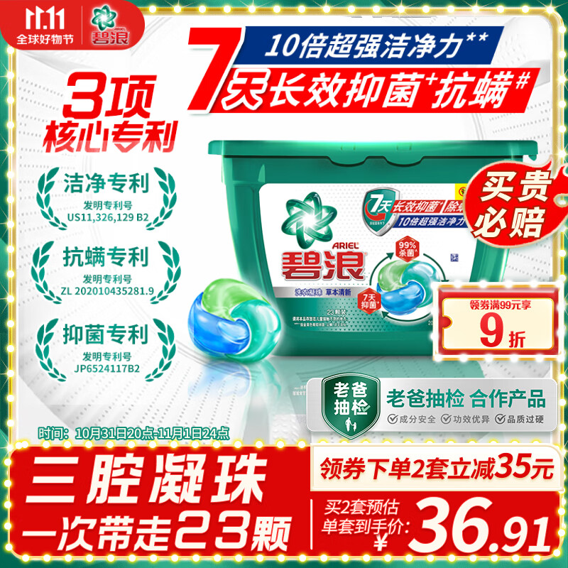 ¥44.9 碧浪洗衣凝珠23颗家庭装7天抑菌三重酵素十倍洁净力抗螨持久留香 54.9