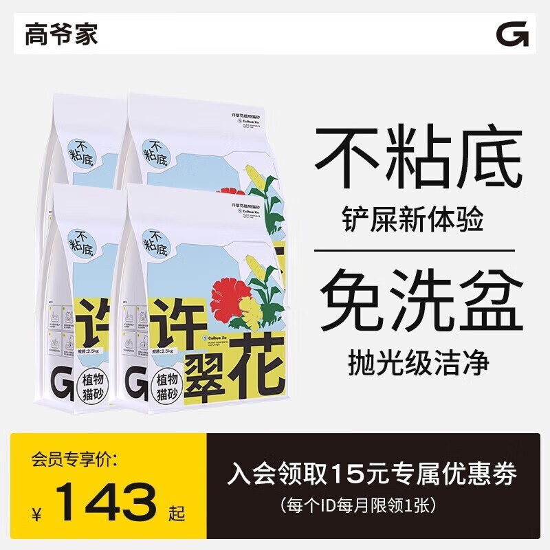 ¥143 高爷家许翠花猫砂不粘底结团力强天然植物无尘猫砂矿砂 原味猫砂2.5kg*4包 158