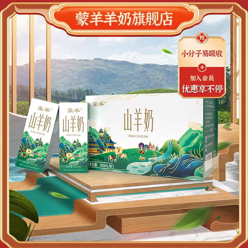 ¥42 蒙羊蒙羊 山羊奶 中老年乳蛋白 原生钙 儿童羊奶 200ml*6 山羊奶 45