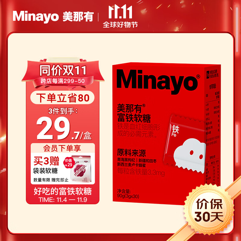 ¥44 Minayo美那有 富铁软糖 孕妇姨妈期儿童成人中老年人30颗*1盒 49
