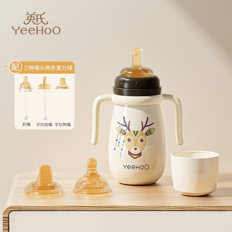 ¥89.9 英氏(YEEHOO)婴儿保温奶瓶新生儿奶瓶儿童保温杯婴儿学饮杯便携吸管水杯保温壶 贵族白-保温奶瓶(配三头) 209.9
