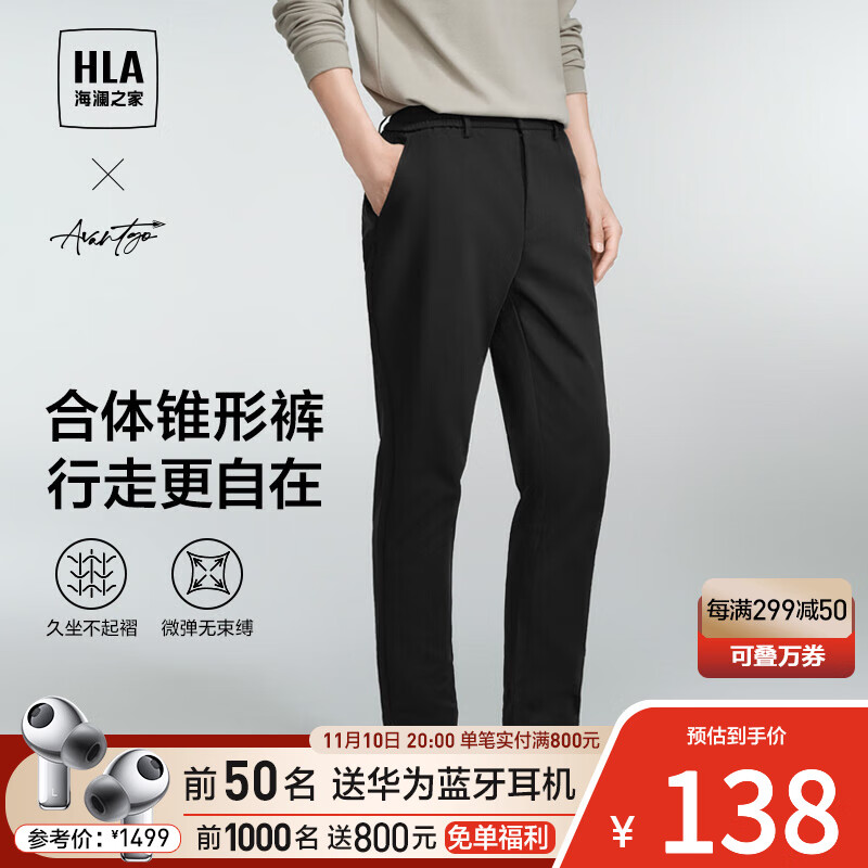 ¥138 海澜之家(HLA)休闲裤男【加绒可选】23新款轻商务时尚系列微阔松紧腰裤子男秋季 【不加绒】-黑色3M 175/84A(L)推荐66-71kg 178