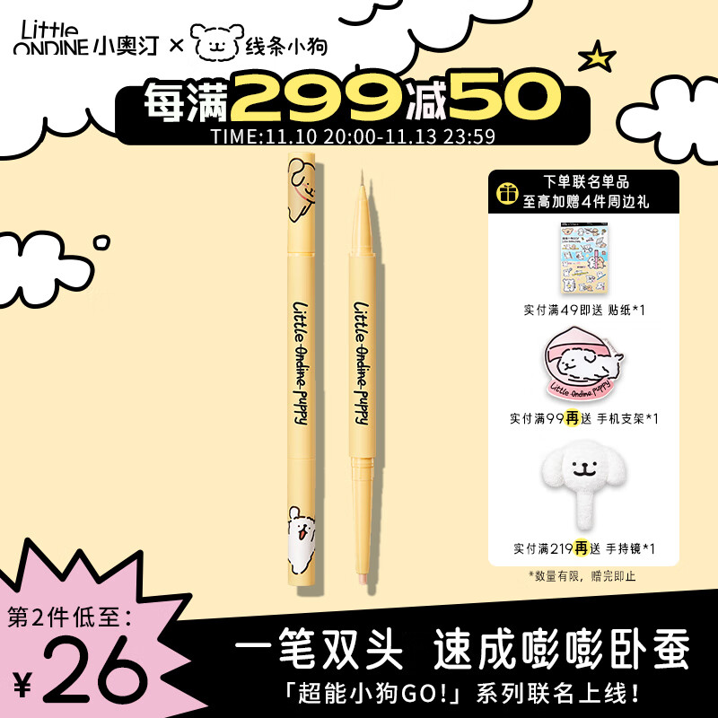 ¥44 小奥汀(littleondine)双效立体卧蚕笔 01天生裸杏0.6g 线条小狗联名款 59