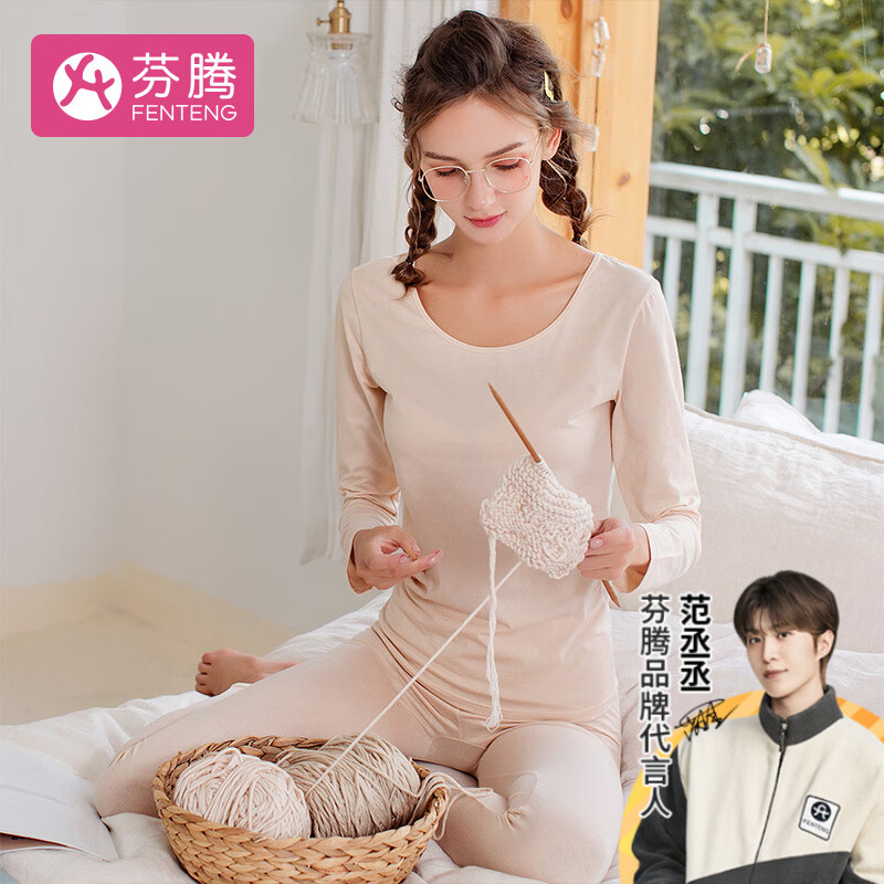 ¥97.9 芬腾 保暖内衣女士套装修身圆领少女棉毛衫长袖长裤打底衫 肤色-女款 L 109.9